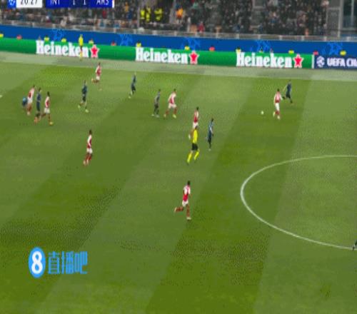 上半场伤停补时1分钟,半场结束,国际米兰暂1-2阿森纳。